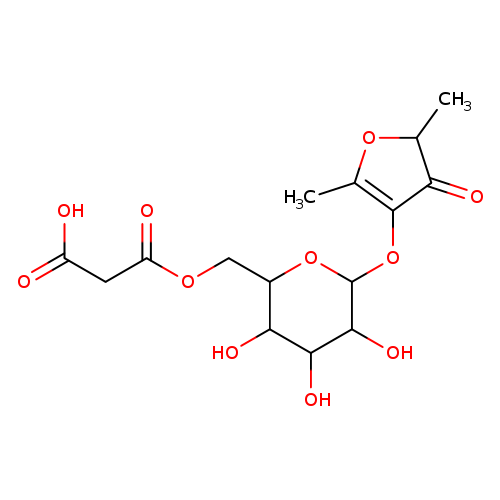 | CHEM023421 | Furaneol 4-(6-malonylglucoside) Not Available | C15H20O11 376.313 |