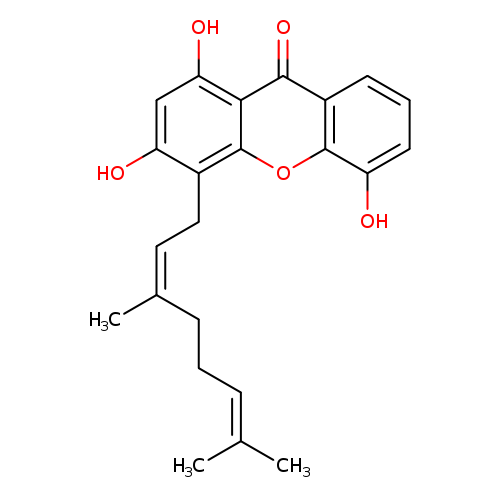 | CHEM033562 | (E)-4-(3,7-Dimethyl-2,6-octadienyl)-1,3,5-trihydroxyxanthone 136364-54-0 | C23H24O5 380.434 |