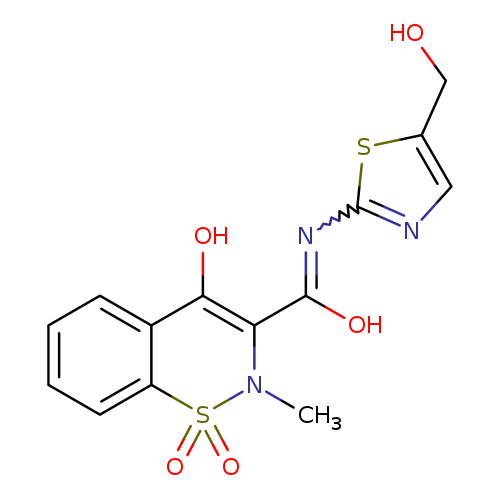 | CHEM022053 | 5'-Hydroxytenoxicam Not Available | C13H11N3O5S2 353.374 |