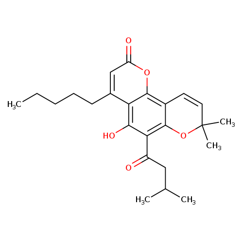 | CHEM028249 | 5-Hydroxy-8,8-dimethyl-6-(3-methyl-1-oxobutyl)-4-pentyl-2H,8H-benzo[1,2-b:3,4-b']dipyran-2-one 39036-47-0 | C24H30O5 398.492 |