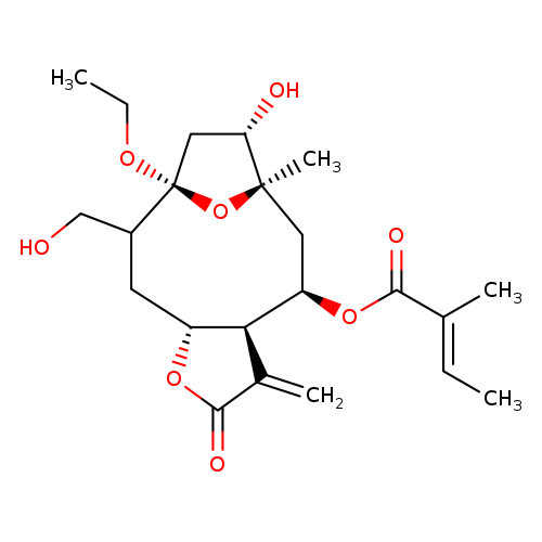 | CHEM032351 | 8beta-Angeloyloxy-15-hydroxy-1alpha,10R-dimethoxy-3-oxo-11(13)-germacren-12,6alpha-olide Not Available | C22H32O8 424.485 |