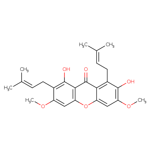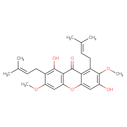 | CHEM034389 | 1,7-Dihydroxy-3,6-dimethoxy-2,8-diprenylxanthone 132031-39-1 | C25H28O6 424.486 |