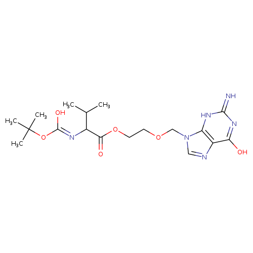 | CHEM043081 | L-Valine, N-[(1,1-dimethylethoxy)carbonyl]-, 2-[(2-amino-1,6-dihydro-6-oxo-9H-purin-9-yl)methoxy]ethyl ester 502421-44-5 | C18H28N6O6 424.458 |