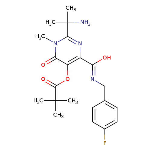 | CHEM044548 | 2-(2-aminopropan-2-yl)-4-[(4-fluorobenzyl)carbamoyl]-1-methyl-6-oxo-1,6-dihydropyrimidin-5-yl 2,2-dimethylpropanoate 1172131-64-4 | C21H27FN4O4 418.469 |