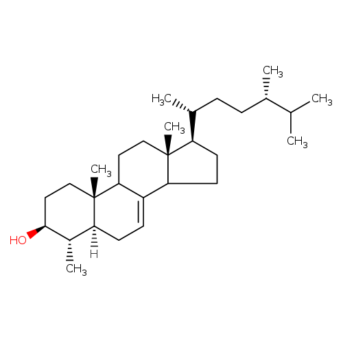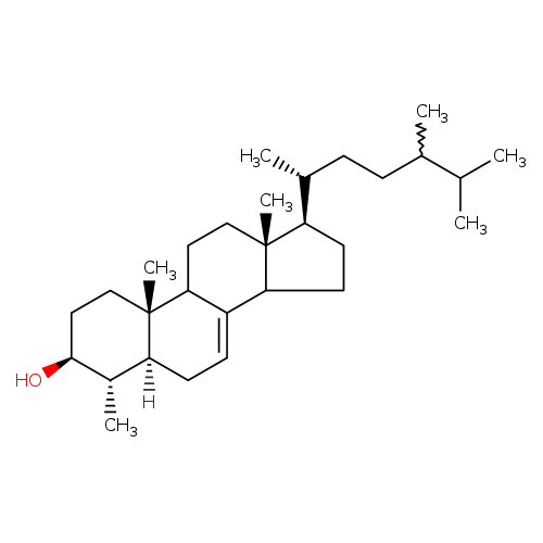 | CHEM042005 | 4,4-dimethyl-5α-cholest-7-en-3β-ol Not Available | C29H50O 414.707 |
