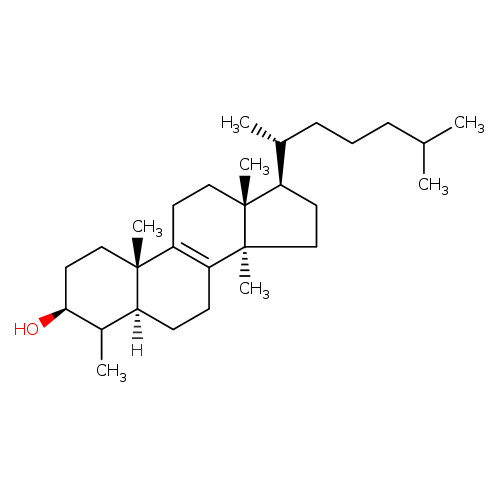 | CHEM042050 | 4α-hydroxymethyl-5α-cholesta-8,24-dien-3β-ol Not Available | C28H46O2 414.674 |