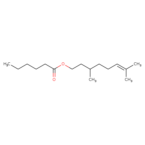 | CHEM032296 | Citronellyl hexanoate 10580-25-3 | C16H30O2 254.408 |
