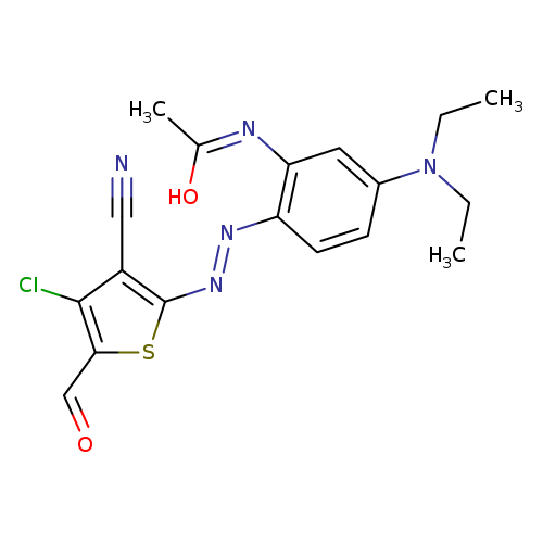 | CHEM044802 | 2'-(4-chloro-3-cyano-5-formyl-2-thienyl)azo-5'-diethylaminoacetanilide 104366-25-8 | C18H18ClN5O2S 403.890 |