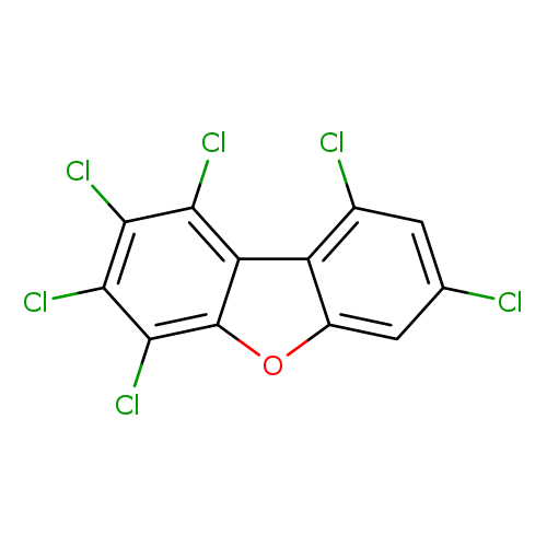 | CHEM046594 | 3,4,5,6,11,13-hexachlorodibenzofuran Not Available | C12H2Cl6O 374.862 |
