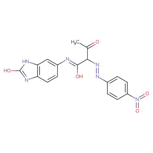| CHEM012641 | Butanamide, N-(2,3-dihydro-2-oxo-1H-benzimidazol-5-yl)-2-[(4-nitrophenyl)azo]-3-oxo- 52846-56-7 | C17H14N6O5 382.336 |