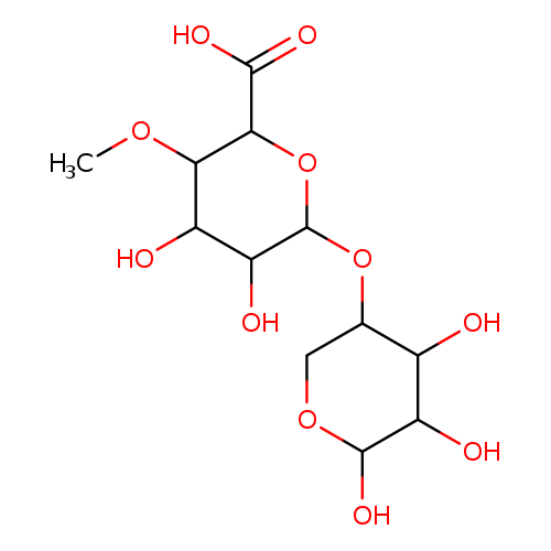 | CHEM033046 | 4-O-(4-O-Methyl-alpha-D-glucopyranuronosyl)-L-arabinose Not Available | C12H20O11 340.281 |