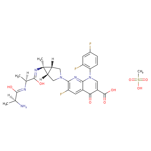 | CHEM020654 | Alatrofloxacin mesylate 146961-77-5 | C28H31F3N6O8S 668.650 |