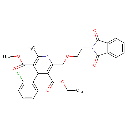 | CHEM044476 | 3-ethyl 5-methyl 4-(2-chlorophenyl)-1,4-dihydro-2-[2-(1,3-dihydro-1,3-dioxo-(2H)isoindol-2-yl)-ethoxymethyl]-6-methyl-3,5-pyridinedicarboxylate 88150-62-3 | C28H27ClN2O7 538.980 |