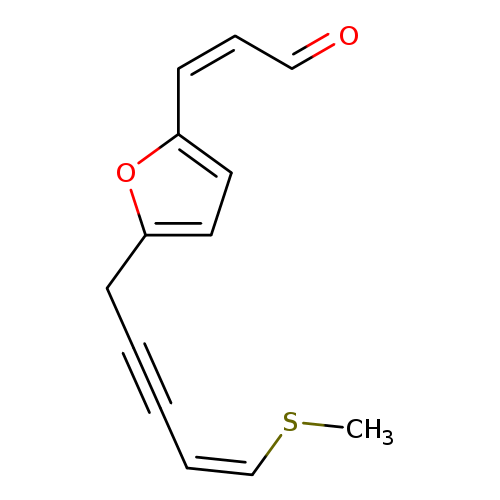 | CHEM025072 | (2E,11Z)-5-[5-(Methylthio)-4-penten-2-ynyl]-2-furanacrolein 24948-23-0 | C13H12O2S 232.298 |