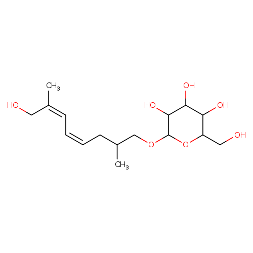 | CHEM032094 | (2E,4E,7R)-2,7-Dimethyl-2,4-octadiene-1,8-diol 8-O-b-D-glucopyranoside Not Available | C16H28O7 332.389 |