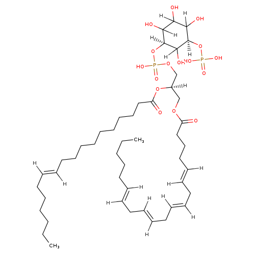 | CHEM039294 | PIP(18:1(9Z)/20:4(5Z,8Z,11Z,14Z)) Not Available | C47H82O16P2 965.105 |