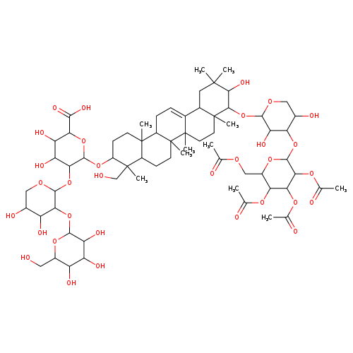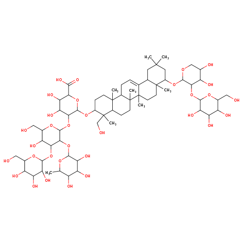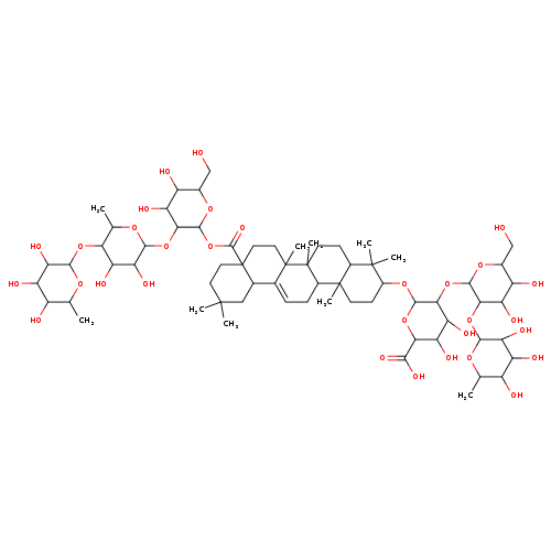 | CHEM022696 | 28-[Rhamnosyl-(1->2)-[b-D-glucosyl-(1->3)]-[2R-methylbutanoyl-(->4)]-fucosyl]-30-methyl-3b,23-dihydroxy-12-oleanene-28,30-dioate 3-[galactosyl-(1->2)-glucuronide] 325489-37-0 | C66H104O31 1393.513 |