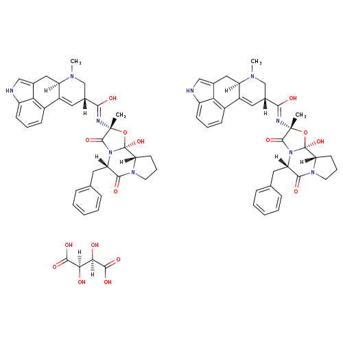 | CHEM017078 | Ergotamine D-tartrate 379-79-3 | C70H76N10O16 1313.432 |