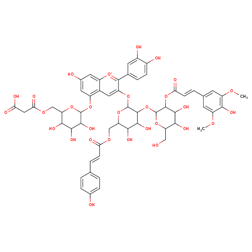 Cyanidin 3-O-[4-Hydroxycinnamoyl-(->6)-[4-hydroxy-3,5-dimethoxycinnamoyl-(->2)-b-D-glucopyranosyl-(1->2)]-b-D-glucopyranoside] 5-O-(6-O-malonyl-b-D-glucopyranoside)