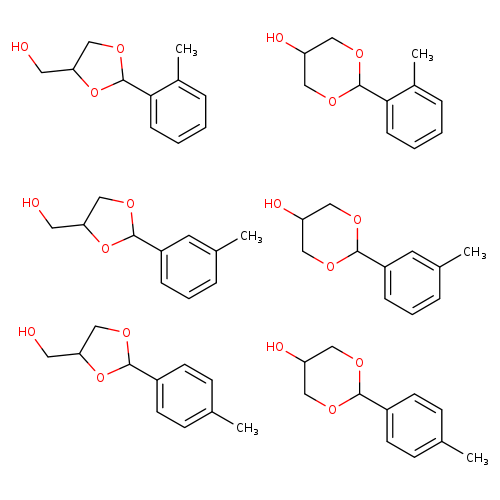 | CHEM032993 | Tolualdehyde glyceryl acetal Not Available | C66H84O18 1165.362 |