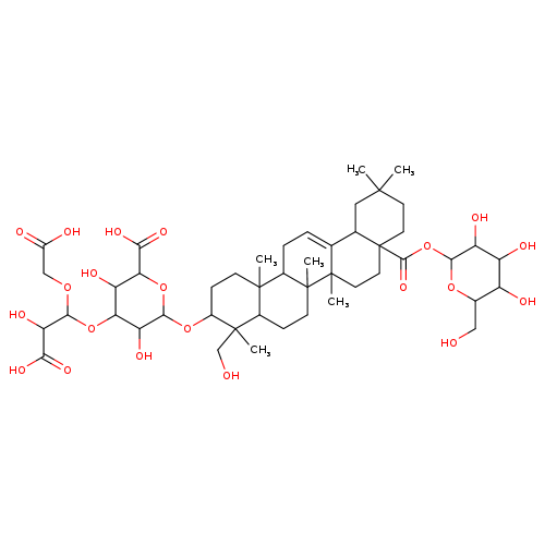 28-Glucosylarjunolate 3-[rhamnosyl-(1->3)-glucuronide]