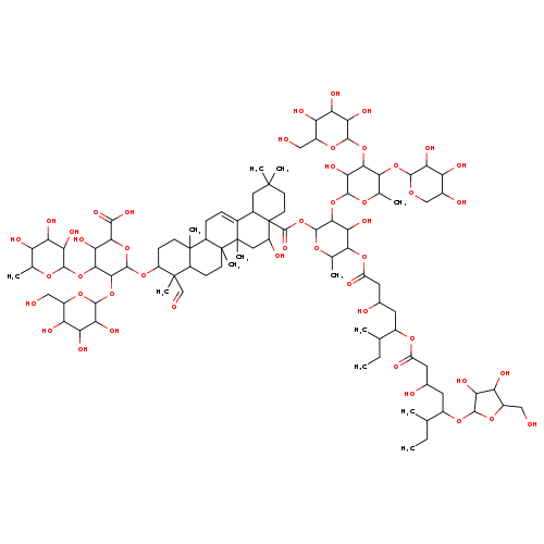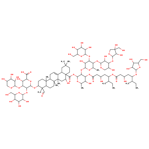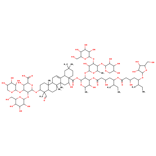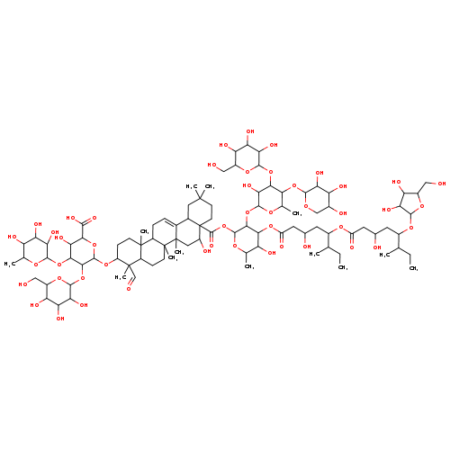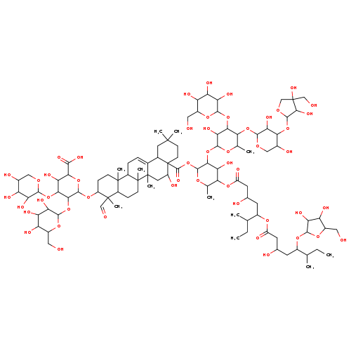 Quillaic acid 3-[rhamnosyl-(1->3)-[galactosyl-(1->2)]-glucuronide], 28-[apiosyl-(1->3)-xylosyl-(1->4)-[glucosyl-(1->3)]-rhamnosyl-(1->2)-4-[5-[[5-(arabinosyloxy)-3-hydroxy-6-methyl-1-oxooctyl]oxy]-3-hydroxy-6-methyl-1-oxooctyl]-fucosyl] ester