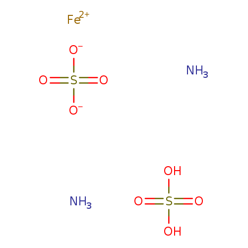 | CHEM004474 | Ferrous ammonium sulfate 10045-89-3 | FeH8N2O8S2 284.040 |