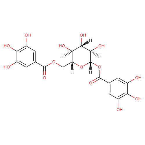 | CHEM026222 | 1,6-di-O-Galloylglucose Not Available | C20H20O14 484.366 |