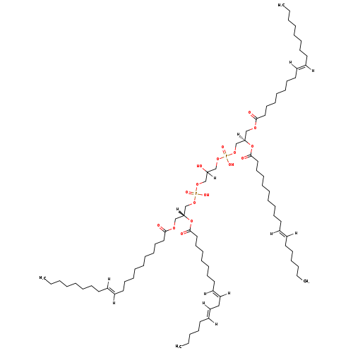 | CHEM039534 | CL(20:1(11Z)/18:2(9Z,12Z)/18:1(9Z)/18:1(11Z)) Not Available | C83H152O17P2 1484.060 |
