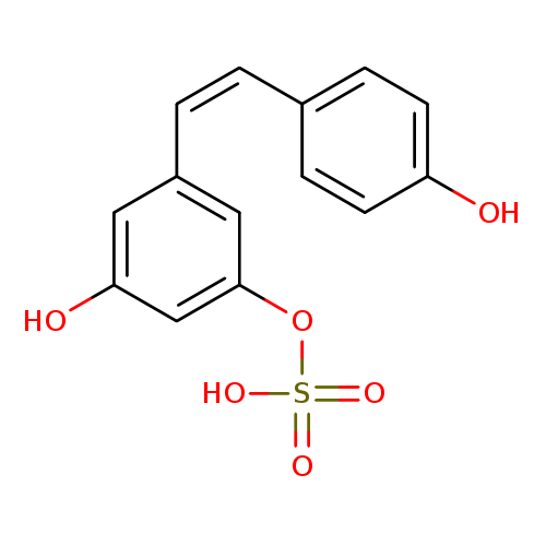 | CHEM041582 | cis-Resveratrol 3-sulfate Not Available | C14H12O6S 308.306 |