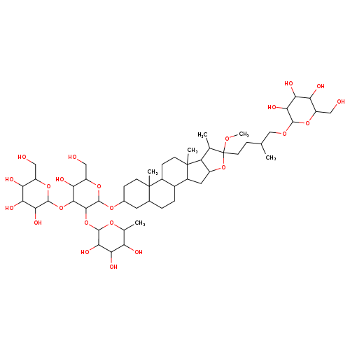 | CHEM023152 | (3b,5a,22x,25S)-Furostane-22-methoxy-3,26-diol 3-[rhamnosyl-(1->2)-[glucosyl-(1->3)]-glucoside] 26-glucoside 74971-02-1 | C52H88O23 1081.241 |