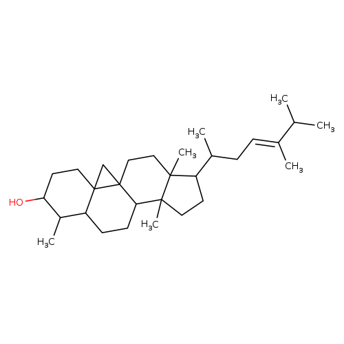 | CHEM024688 | (3beta,4alpha,5alpha,23E)-4,14-Dimethyl-9,19-cycloergost-23-en-3-ol 77704-67-7 | C30H50O 426.717 |
