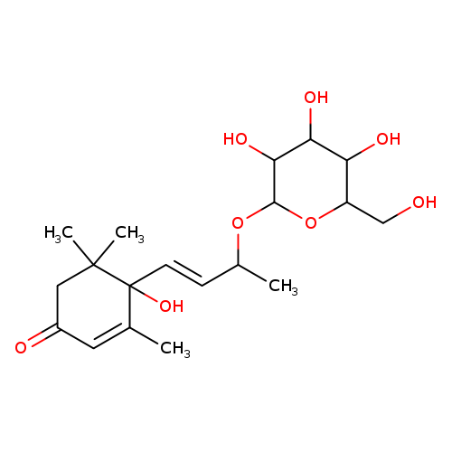 | CHEM023415 | 6e,9e-Dihydroxy-4,7E-megastigmadien-3-one 9-glucoside 185414-25-9 | C19H30O8 386.437 |