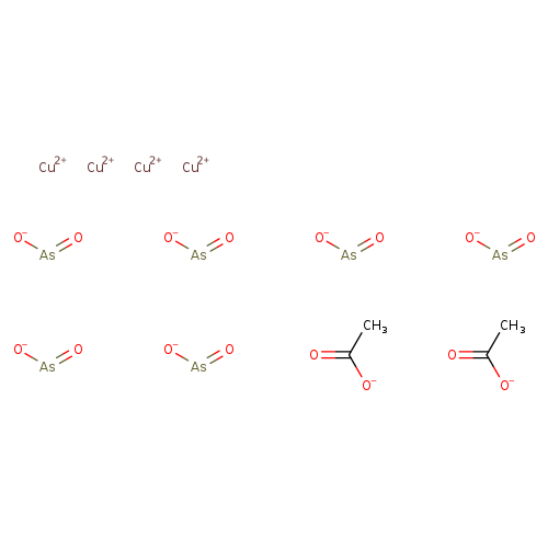Matched description: … Copper(II) acetoarsenite is a chemical compound of copper and arsenic better known as Paris Green ... environment in rocks, soil, water, and air. Arsenic is a chemical element that has the symbol As and atomic ... number 33. It is a poisonous metalloid that has many allotropic forms: yellow (molecular non …
