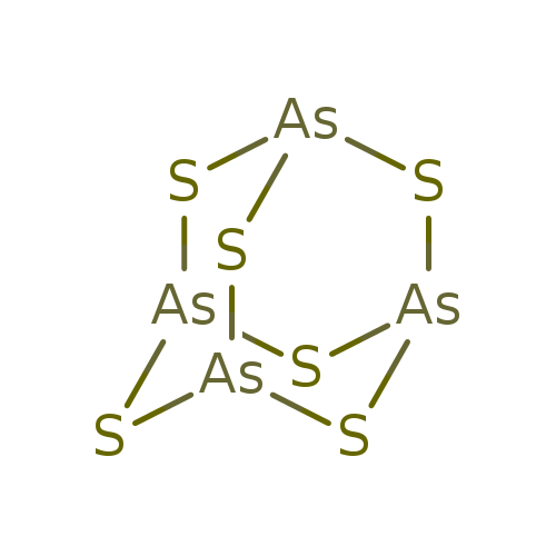 Matched description: … Arsenic disulfide is a sulfide of arsenic that occurs as the mineral realgar. Arsenic is a chemical ... element that has the symbol As and atomic number 33. It is a poisonous metalloid that has many ... few that are seen. Three metalloidal forms of arsenic with different crystal structures are found free …